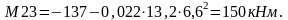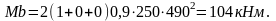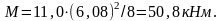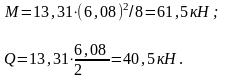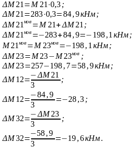 Расчетные изгибающие моменты в сечениях I–I и II–II по формулам: