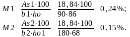 Принимаю нестандартную сварную сетку с одинаковой в обоих направлениях рабочей арматурой из стержней 24Ø10 А-II с Аs=18,84см2. проценты армирования расчетных сечений: