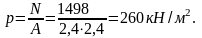 . Приравниваю размер а=2,4 м. давление на грунт от расчетной нагрузки