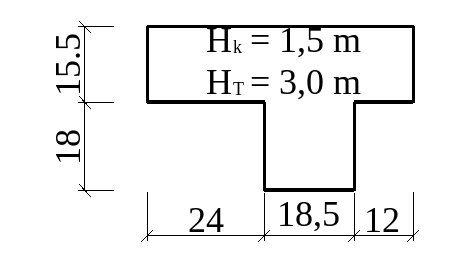 b3 = b1 +2h max1 m = 0,7 + 2 · 3,50 · 0,75 = 5.95 м. ;