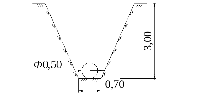 Крутизну откоса(m) устанавливаем в зависимости от вида грунта и глубины траншеи (m = 0,75);
