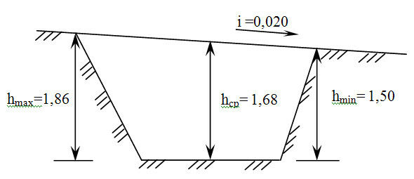 hmax1 = hmin +il = 1,5 + 0,020 15,50 = 1,86 м.
