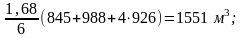V= (VТ1 + VТ2)/2=(361.5+582)/2=471.75 м3 ;