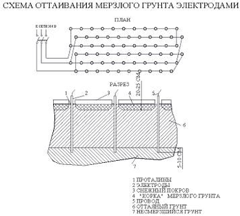 Существуют различные способы термического оттаивания грунтов, местными тепляками, иглами через шпуры, электродами.