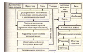Цементное производство в укрупненном виде состоит из следующих основных переделов: