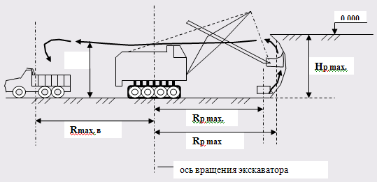 Rcт max – наибольший радиус резания грунта на уровне стоянки