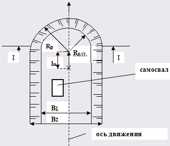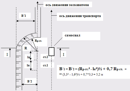 В1 = 2*(Rр. cт² – lп²)½ = 2*(3,3² - 1,6²)½ = 5,6 м – ширина забоя по низу