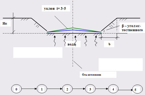 0-1 Ручная разработка котлована и создание уклона от оси в обе стороны.