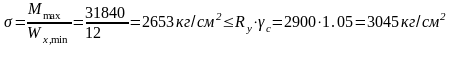 Применяемая сталь С-235 с расчетным сопротивлением изгибу Ry=2250 кг/м2 и расчетным сопротивлением сдвигу Rs=1300 кг/м2.