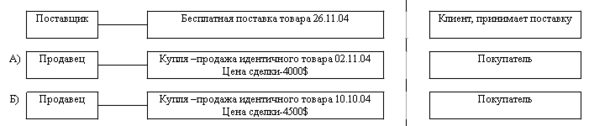 а) сделка купли-продажи однородного товара совершенная 02.11.04г., цена сделки = 4000$; б) сделка купли-продажи однородного товара совершенная 10.10.04г., цена сделки = 4500$;