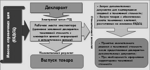 Рис 3. Алгоритм использования Единой базы данных справочных цен на основные товары и услуги для контроля таможенной стоимости.