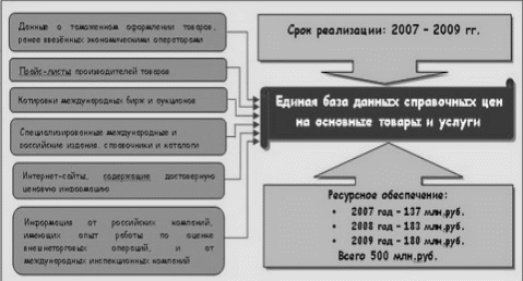 Для более объективного контроля заявляемой импортерами таможенной стоимости Федеральная Таможенная Служба формирует Единую базу данных справочных цен на основные товары и услуги (ЕБДСЦ).