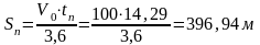 где V0 – скорость поезда в момент начала торможения, км/ч;