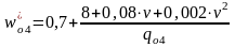 Основное удельное сопротивление движению четырёхосных вагонов в составе на различных буксовых подшипниках в Н/кН определяется по формуле: