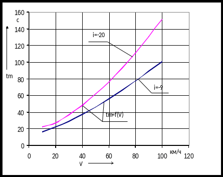 ,тормозной путь поезда SТ =1786,31м; при уклоне i = -20 0/00 тормозной коэффициент