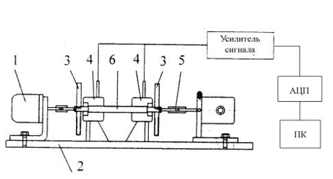 Датчики виброускорения - пьезоэлектрические акселерометры установлены на опорах - подшипниках качения. Сигнал виброускорения с датчиков поступает на измерители амплитуды, датчики измеряют мгновенные значения виброускорений; измерители амплитуды показывают амплитуды виброускорения на опорах. Эксперимент проводится способом трех пусков с пробными массами.