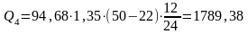 б) тепловий потік від інфільтрації для літнього періоду експлуатації, Вт:
