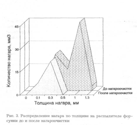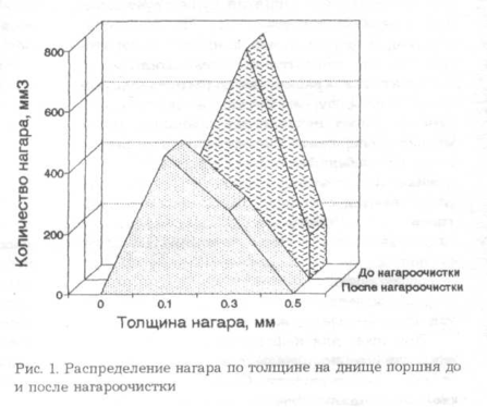 При введении в топливо присадки в концентрации 0,02-0,05%, нагар удалялся на 25-65' (рис. 4).