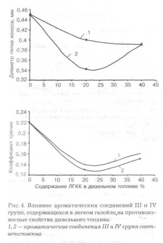 противоизносные свойства. Дальнейшее увеличение концентрации ароматических углеводородов группы приводит к ухудшению противоизносных свойств дизельного топлива.