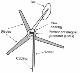 Fig 2.1 Basic features of a typical small wind generator [6]
