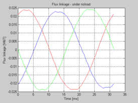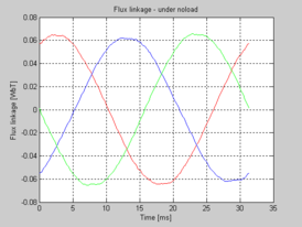 xlabel('Time [ms]'),ylabel('Flux linkage [WbT]')