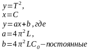 Располагая измеренными значениями Тi при различных Сi вычислим y и по формулам найдём a и b.