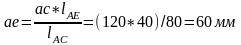 Для нахождения ускорения точки E на плане, воспользуемся соотношением. Т.к. точка E лежит на звене AC, то справедливо соотношение: