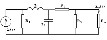 на выходе цепи, используя функцию передачи на выходе цепи