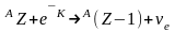 3. Электронный захват, при котором один из электронов атомной оболочки (например, электрон К-оболочки) захватывается ядром и при этом испускается нейтрино