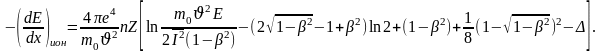 -частиц с атомными электронами приводит к передаче атомному электрону некоторой энергии, следствием чего является либо ионизация, либо возбуждение атома. Оба вида передачи энергии имеют примерно равную вероятность и объединяются под общим названием "ионизационные потери энергии". Теория ионизационных потерь электронов была разработана Бором, а также Бете и Блохом, которые получили формулу для потери энергии на ионизацию на единице пути