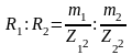 1) при равных скоростях пробеги заряженных частиц в веществе пропорциональны массам этих частиц и обратно пропорциональны квадратам зарядов: