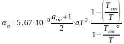 Коефіцієнт тепловіддачі випромінюванням продуктів згоряння ураховує випромінювання триатомних газів (СО2, SО2, Н2O) і частинок леткої золи. Це кількість теплоти, переданої випромінюванням Qn вт/м2, віднесена до різниці температур газів і стінки – tcm.