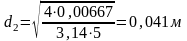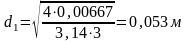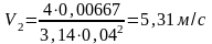 Отриманні розрахунковим шляхом величини d1 та d2 внутрішніх діаметрів трубопроводів округлюємо до ближніх стандартних значень, т.б. d1 = 50мм та d2 = 40мм. Таким чином уточнюємо величини істинних швидкостей течії рідини в трубах: