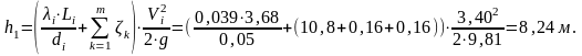 Втрати напору на всмоктуючій (і=1) ділянці будуть відбуватись по довжині трубопроводу L1 та у місцевих опорах: