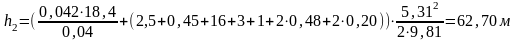 На нагнітаючій ділянці (і=2) втрати напору будуть відбуватись по довжині трубопроводу L2 та на місцевих опорах: