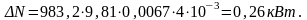 1.4.1 Втрати потужності, пов’язані з використанням прийнятого насосу, при його регулюванні засувкою при напірному трубопроводі, кВт:
