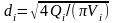 З табл.Б.3 обираємо допустимі значення Vi=(3,0…5,0) величини швидкостей в технічних трубопроводах та заздалегідь визначаємо діаметри di труб для ділянок системи: