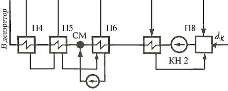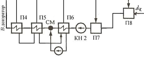 Заменить в тепловой схеме второй (по ходу основного конденсата) подогреватель низкого давления смешивающего типа П7 (рис. 4.1.) на поверхностный и проследить влияние на тепловую экономичность.