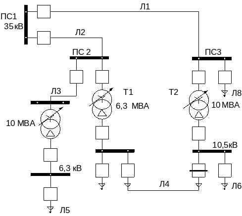 Напряжение оперативного тока: на ПС1 – 110 В =, на ПС2 и ПС3 – 110 В ~;