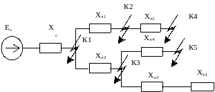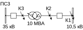Проведём расчёт тока трёхфазного КЗ в точке К1 (указана на рисунке 2).