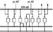 – ОРУ 220 кВ: количество присоединений = 5 (3×ВЛ 220 кВ + 2×АТ 500/220). Выбираем схему «одна секционированная система шин с обходной с отдельными секционным и обходным выключателем».
