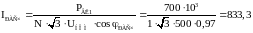 Ориентировочно для определения расчётного тока принимаем cosφРАСЧ = 0,97