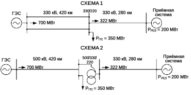 Рис. 1. Варианты принципиальной схемы электропередачи