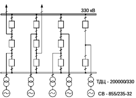 – ОРУ 330 кВ: количество присоединений = 5 (3×ВЛ 330 кВ + 2×АТ 330/220). Выбираем схему «трансформаторы – шины с присоединением линий через 2 выключателя»