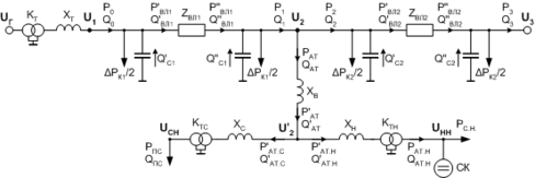 – потерями активной мощности намагничивания трансформаторов и шунтирующих реакторов пренебрегают