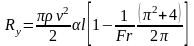 Для оцінки підйомної сили Ry та опору Rx , які діють на одиницю ширини плоскої або слабко зігнутої глісуючої пластини нескінченного розмаху в невагомій нев’язкій рідині, справедливі наступні формули: