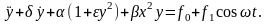 Для стрижня із загасанням, закріпленого з одного боку, добрі результати дає одномодове наближення. Відповідне рівняння можна записати у вигляді системи трьох рівнянь першого порядку. Тут змінна x є безрозмірною амплітудою гармоніки: