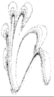 Рис. 3.2б. Отримане в експерименті відображення Пумнкаре для хаотичного руху стрижня, подовжньо зігнутого магнітними силами («квітка Пумнкаре»).