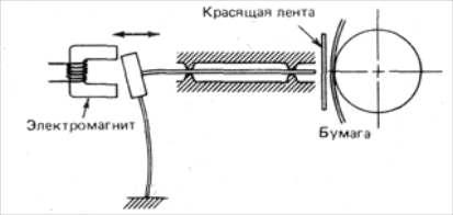Рис. 3.7. Схема дії голки матричного друкуючого пристрою.