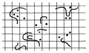 Рис. 4.2. Приклад покриття безлічі крапок на плоскості квадратами з щільною упаковкою